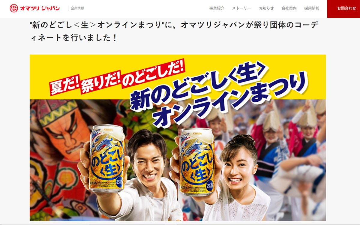 例えば2020年7月に行った「新のどごし〈生〉オンライン祭り」の事例。こちらのオンライン祭りでは、青森ねぶたまつりと東京高円寺阿波踊りの様子をオンラインで生中継。オンライン祭りの様子はSNSで70万回再生され、新のどごし〈生〉のプロモーションとして大成功を収めました。